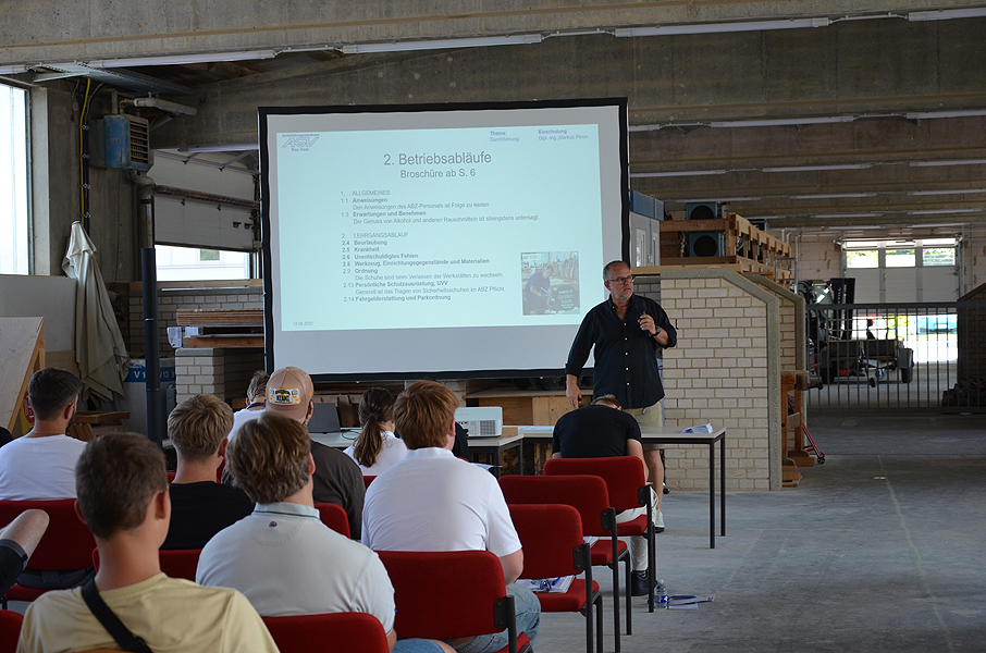 Die Ausbildungszentrum AGV Bau Saar gGmbH begrüßte am 11., 12. und 13. August 2025 die neuen Auszubildenden des Lehrjahres 2025/2026 zur Einschulungsveranstaltung.