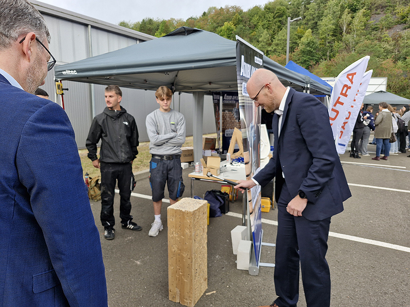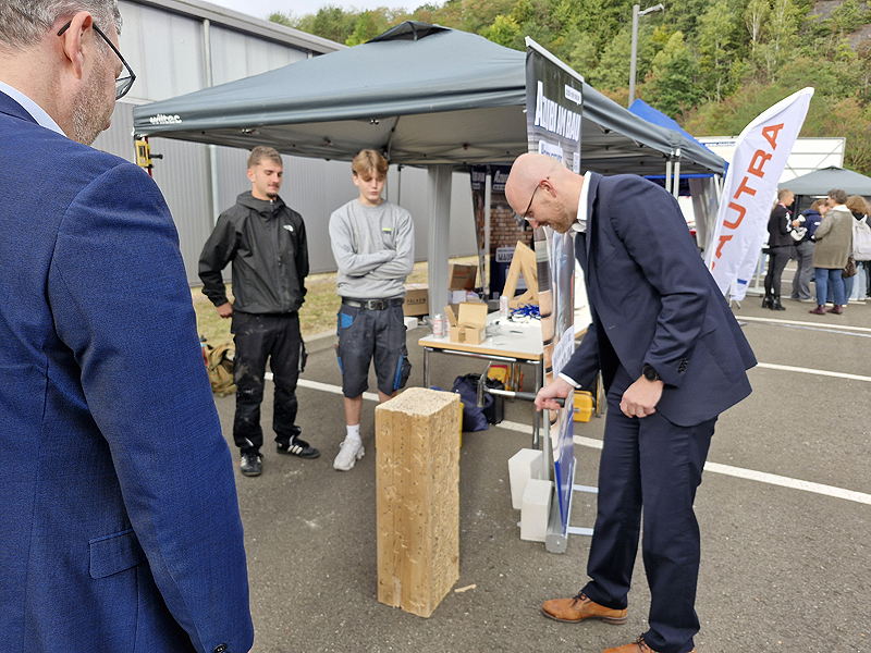 Unterstützt wurden wir von den Firmen Bautra und Backes, die es sich nicht nehmen lassen wollten, das Bauhandwerk interessierten Schülern und Schülerinnen vorzustellen.