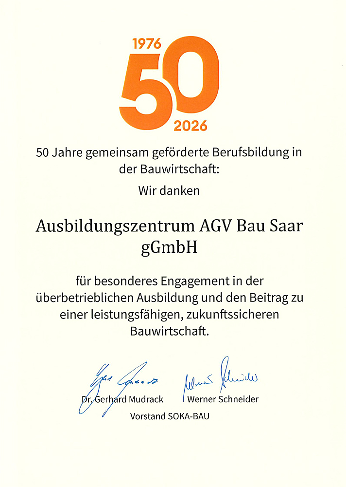 Das Ausbildungszentrum AGV Bau Saar ist seit dem Gründungstag am 15. Dezember 2006 Mitglied im Bildungsnetzwerk Bau.