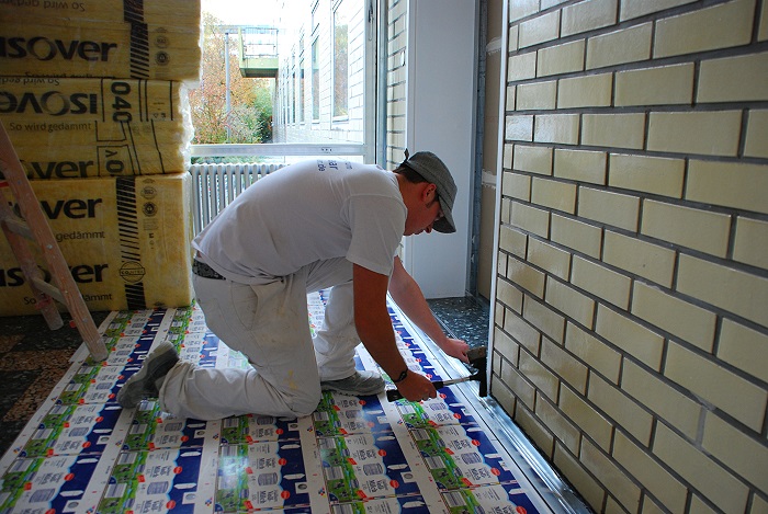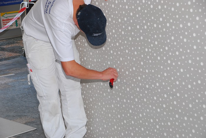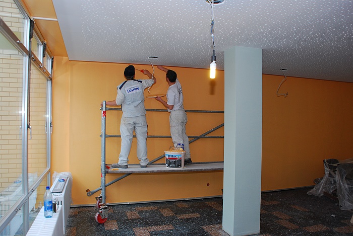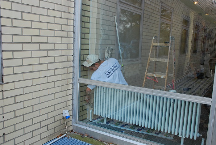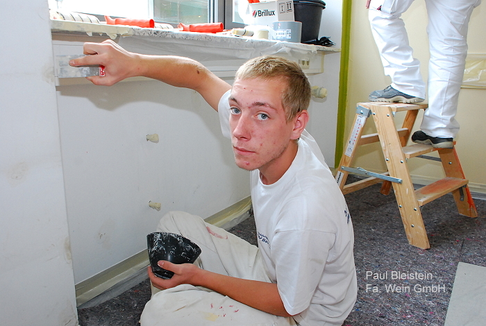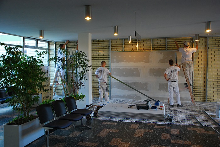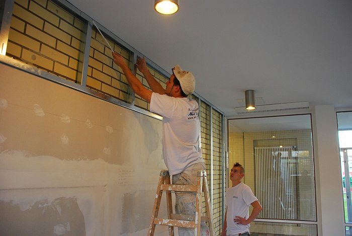 Anstrich des Wartezimmers                                Einmessen der Lamellen
