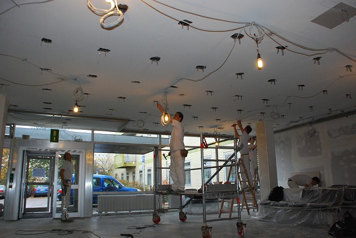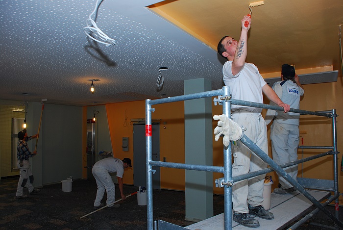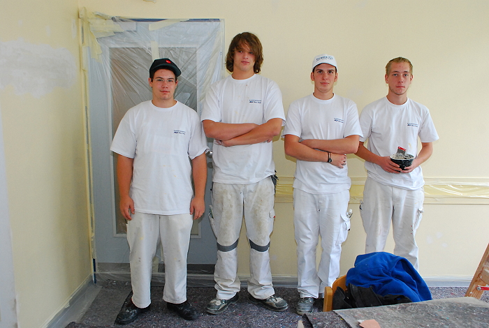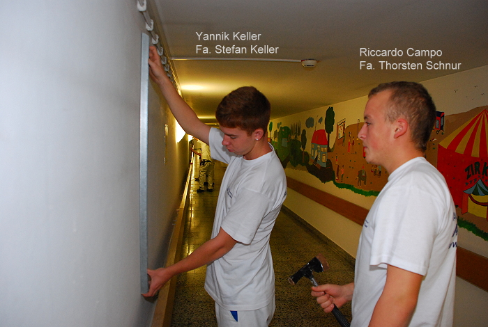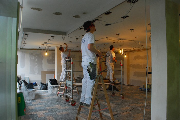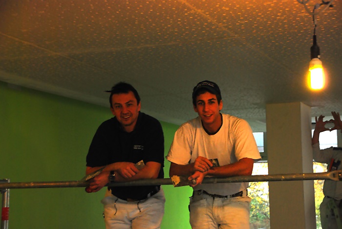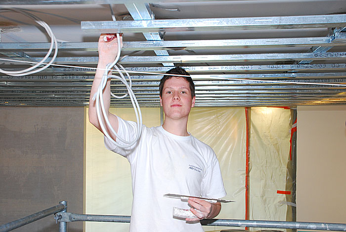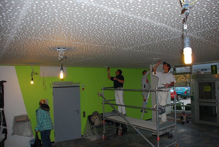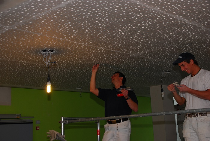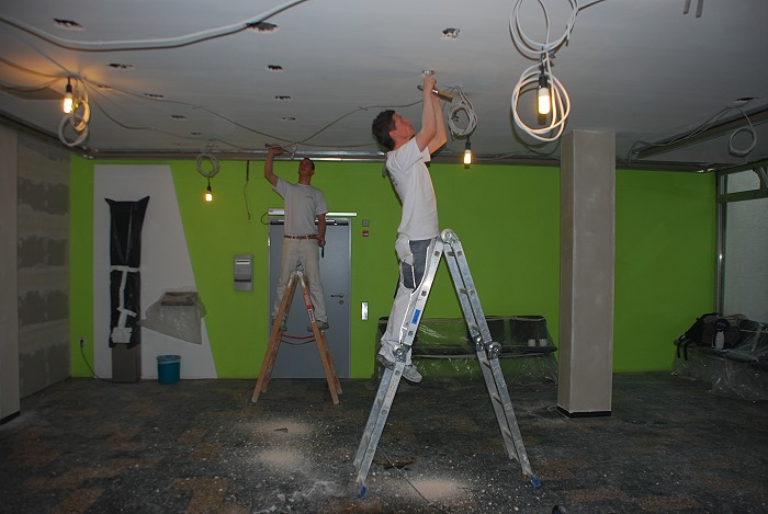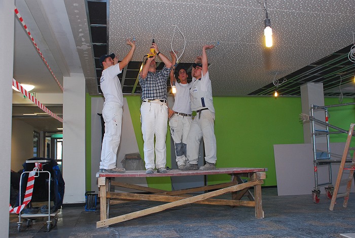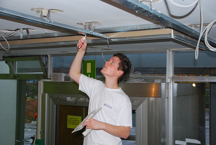Letzte Feinarbeiten (Einmessen der Lampen)     2. Lehrjahr Stuckateure und Michael Detemple