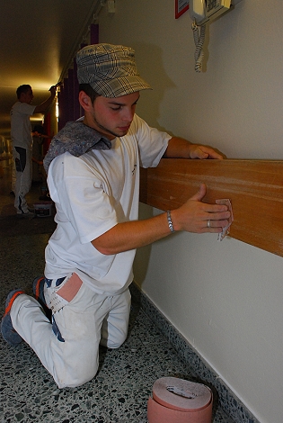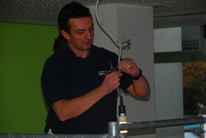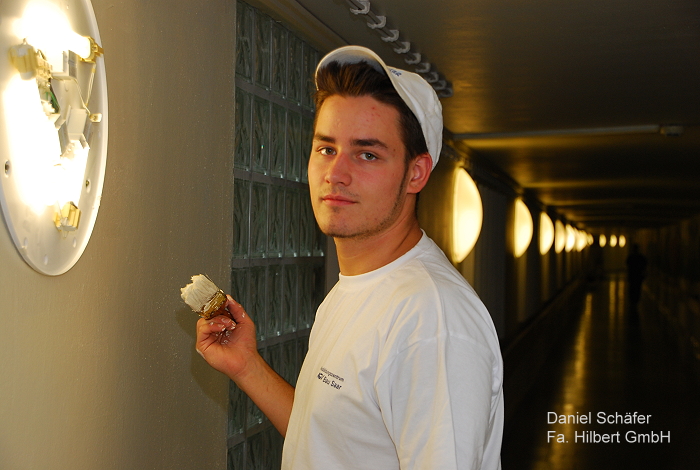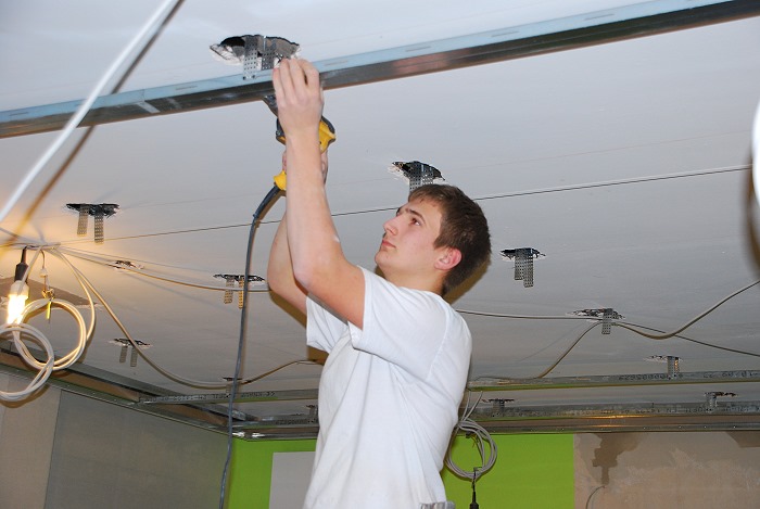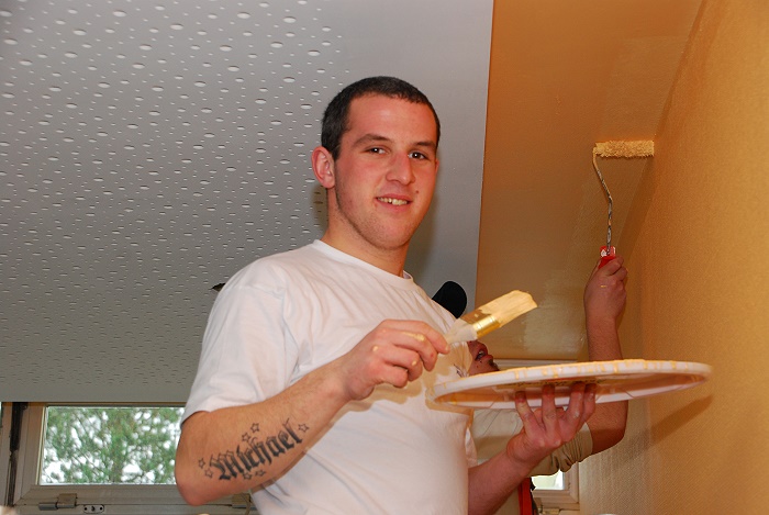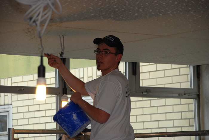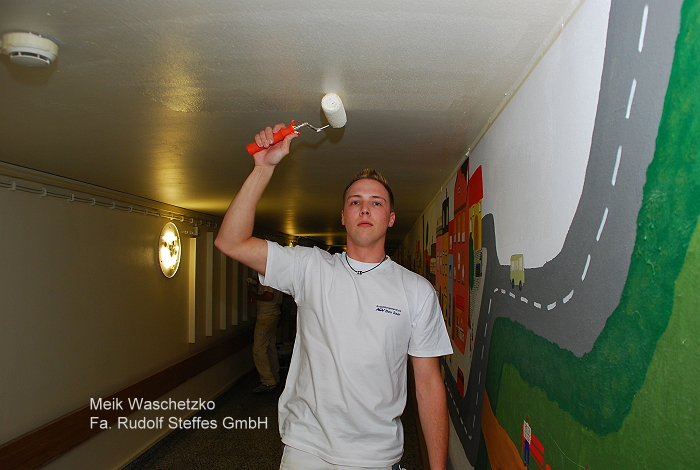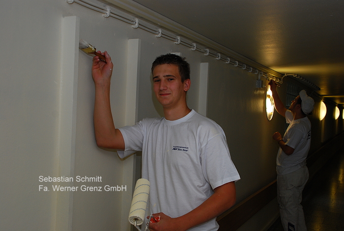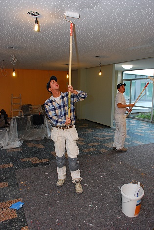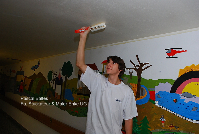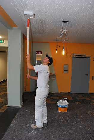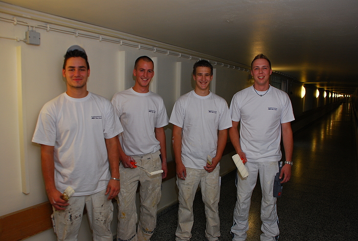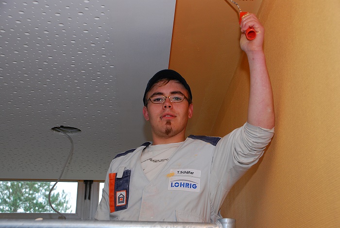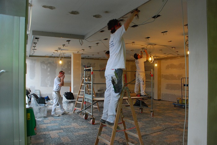 Letzte Feinarbeiten (Einmessen der Lampen)     2. Lehrjahr Stuckateure und Michael Detemple