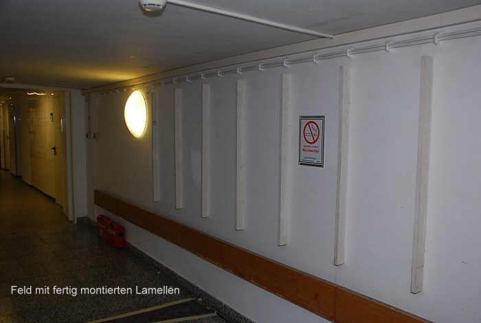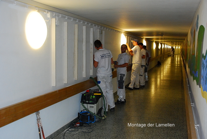 Farbgebung der Lamellen                                   Blick in den 100 m langen Transportflur