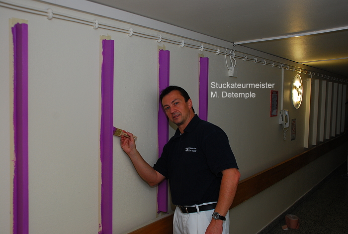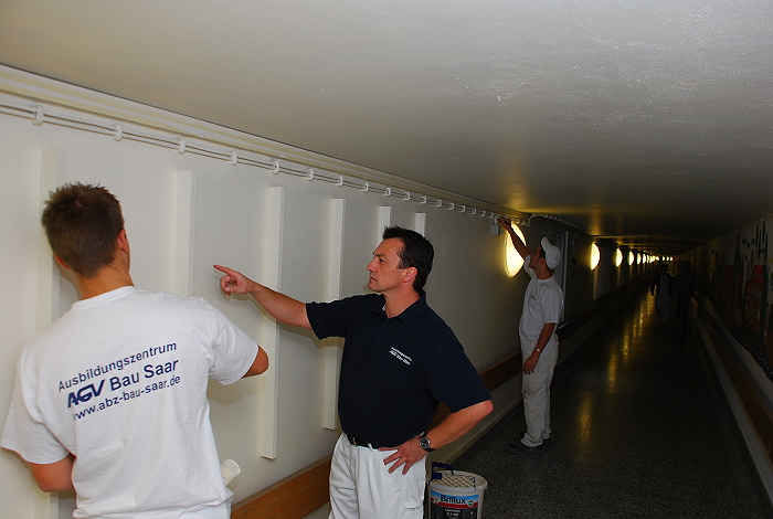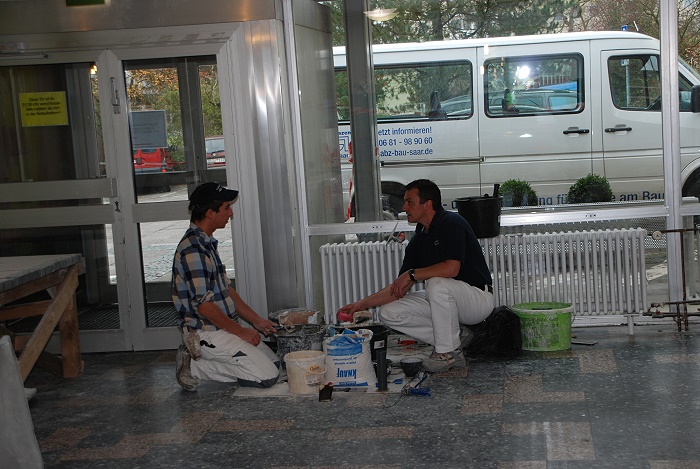 Manpower kam im Wesentlichen vom Ausbildungszentrum des AGV Bau Saar durch Auszubildende zum Stuckateur im 2. und 3. Ausbildungsjahr und dem Stuckateurmeister Michael Detemple.