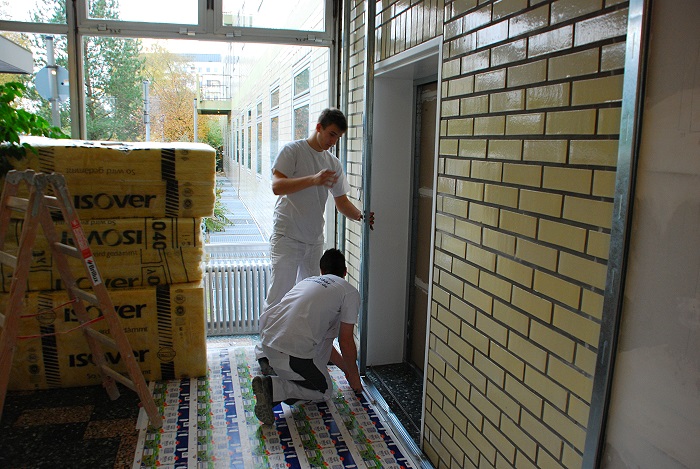 Verspachtelung der Fugen                                    Hier waren früher mal Fahrstuhltüren