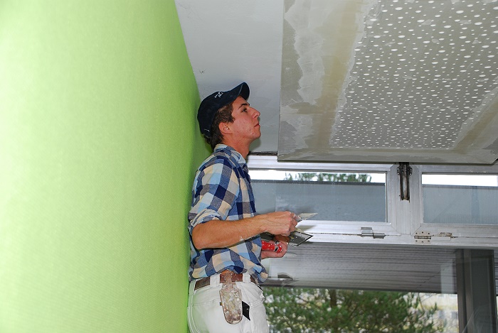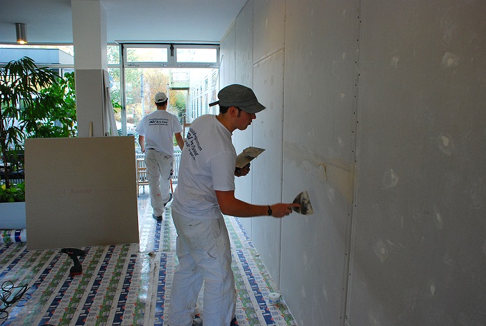 Verspachtelung der Fugen                                  Die Arbeit macht Spaß.