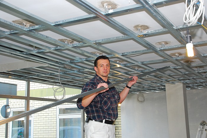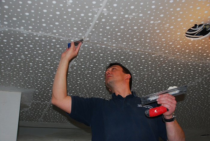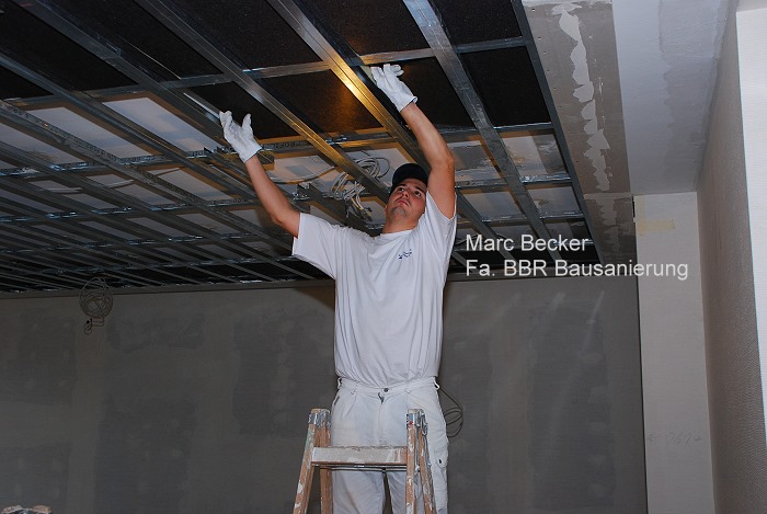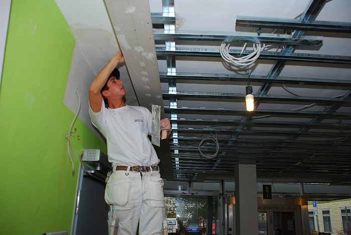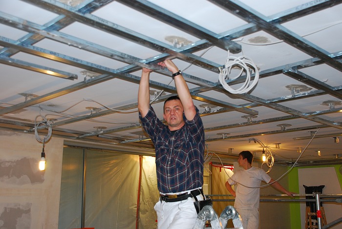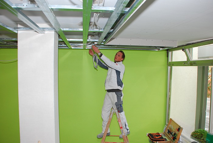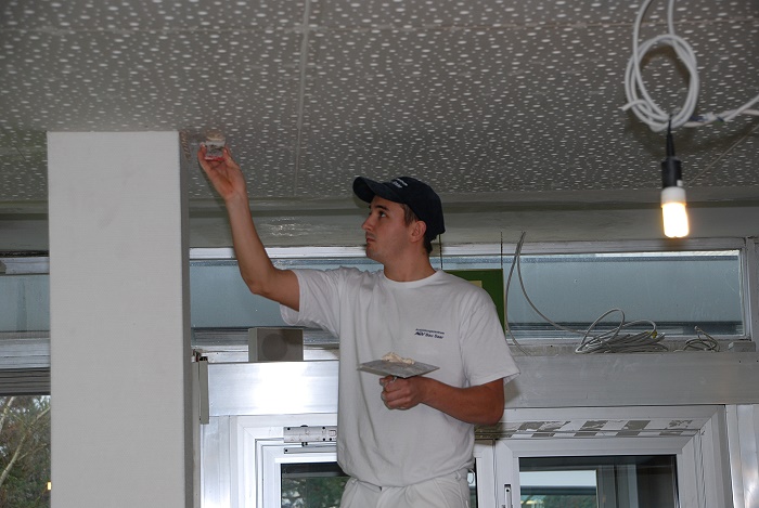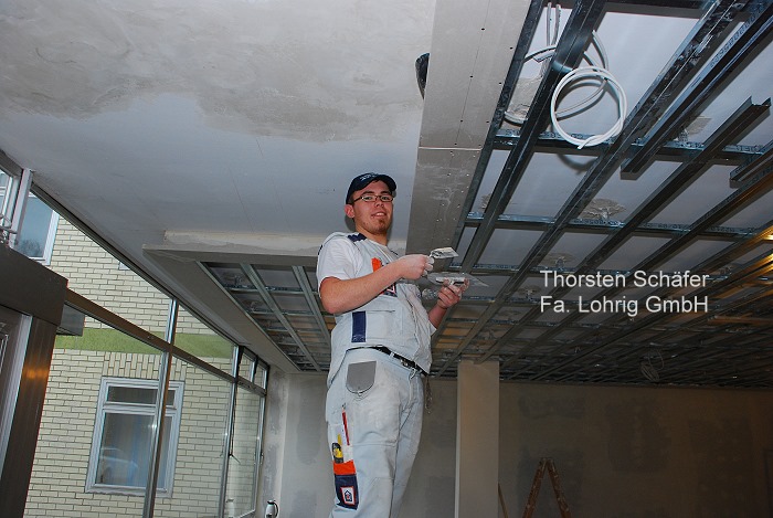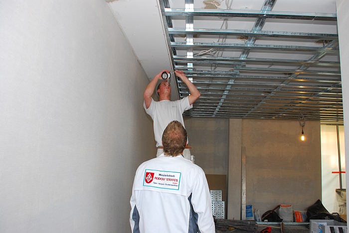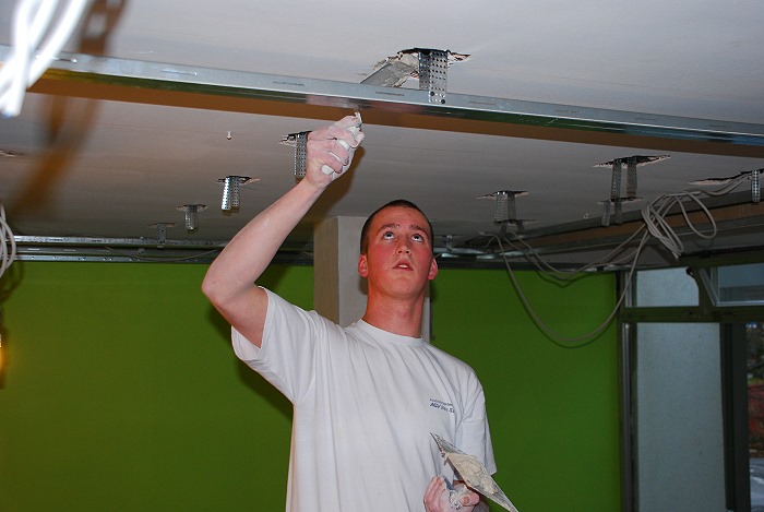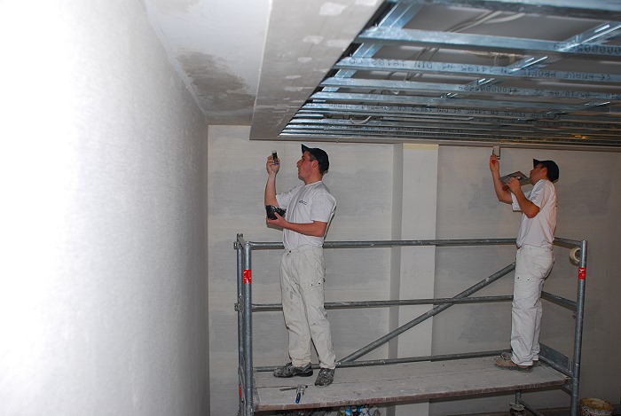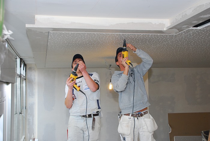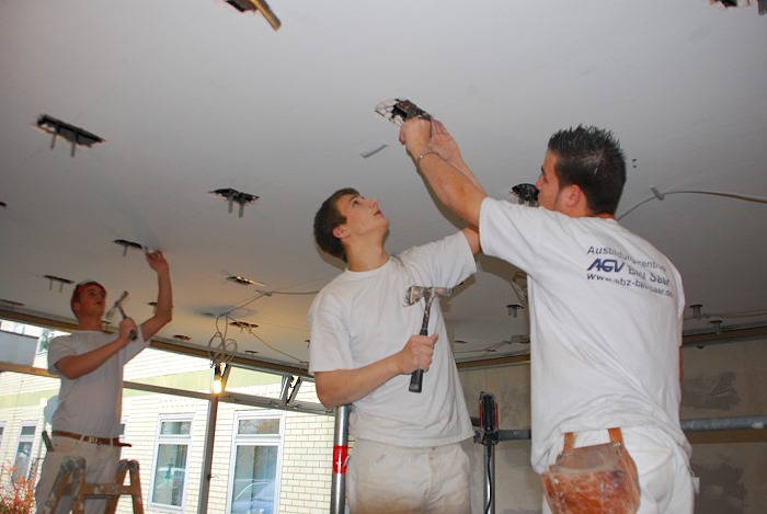 Schließen der geöffneten Decke mit Gips        Jeder hat seine Aufgabe