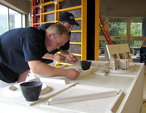 Stuckateure und Fliesenleger bei der Arbeit
