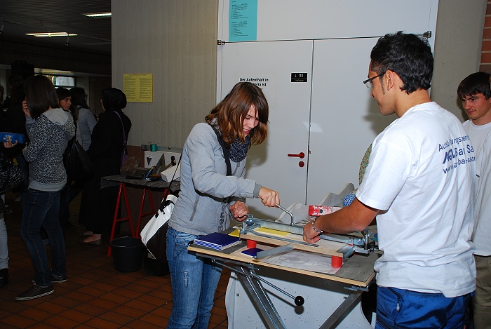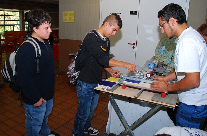 Die interessierten Schüler duften selbst mal Handwerk ausprobieren.