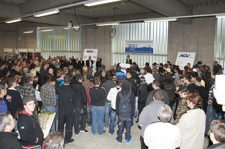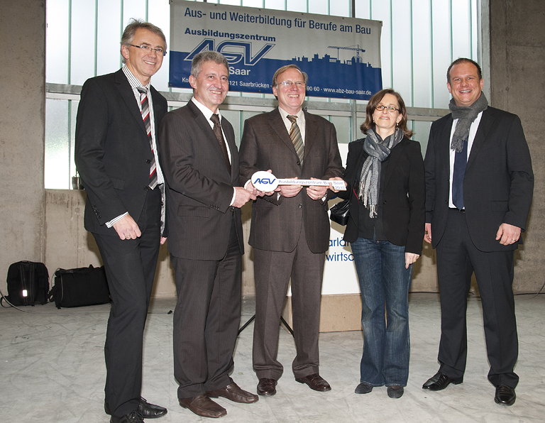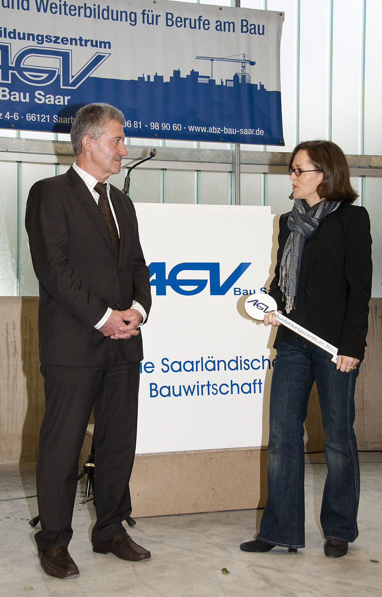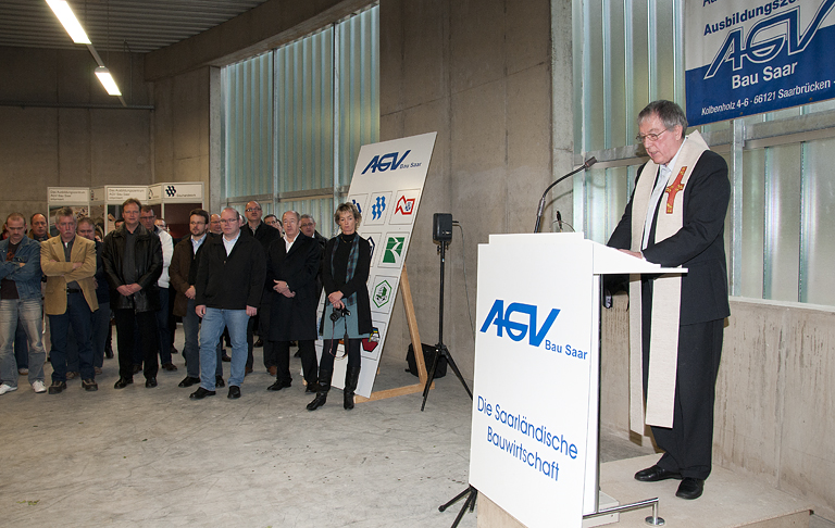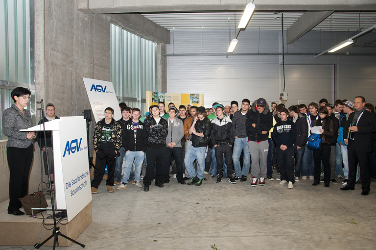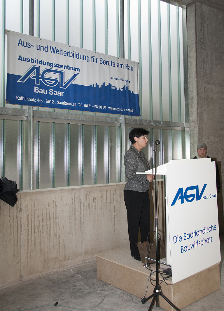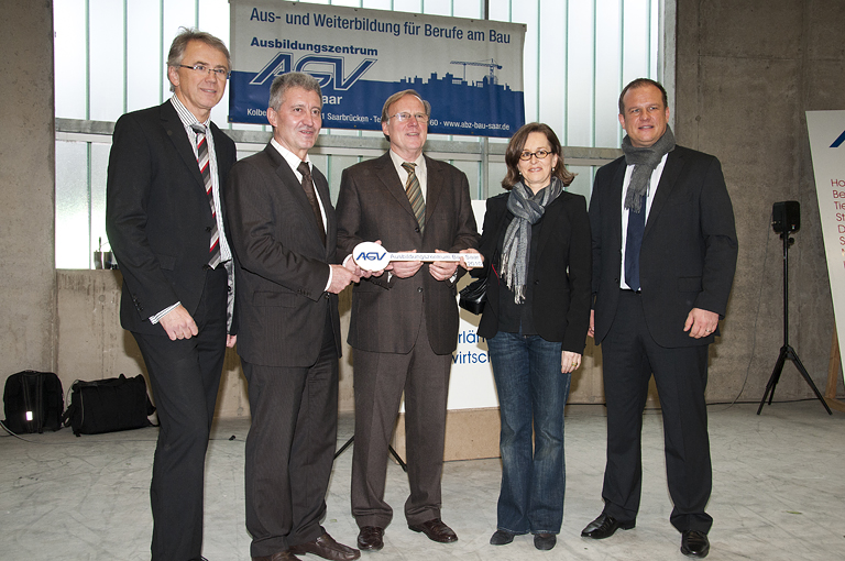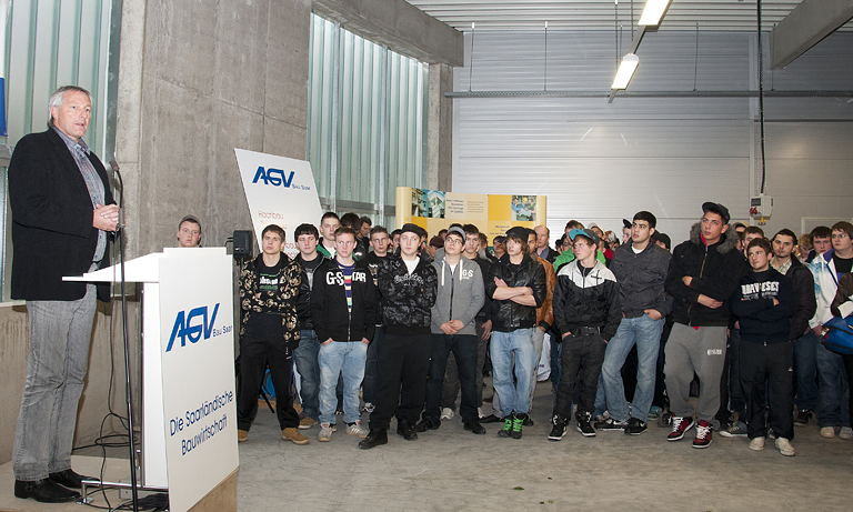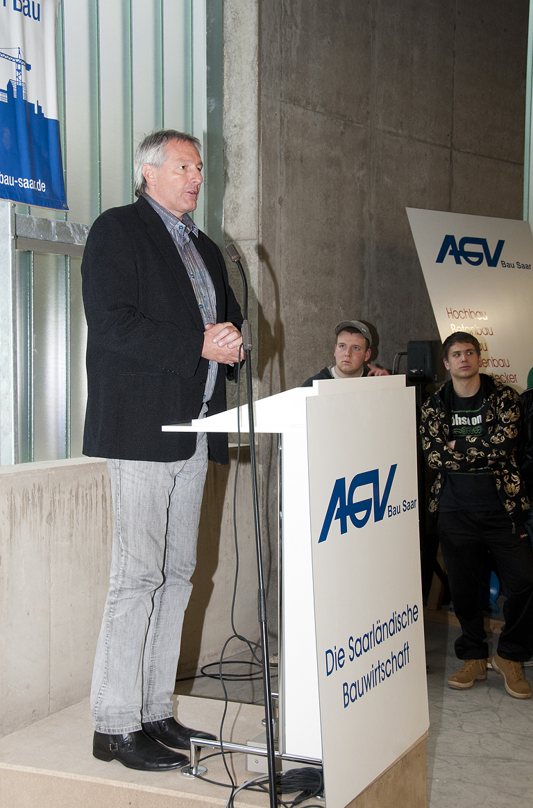 „Diese Investition setzt vor allem ein sichtbares Ausrufungszeichen hinter den Zukunftsglauben der saarländischen Bauwirtschaft, die hier mit dem Einsatz ihrer Eigenmittel in neue Dimensionen vorgestoßen ist“, so der Präsident des AGV Bau Saar Hans-Ludwig Bernardi zum Auftakt der Einweihungsfeier. „Sie ist aber auch“, so Bernardi weiter, „ für das Saarland wichtig, denn die Zukunft des Wirtschaftszweiges Bau beginnt wie die Zukunft des Wirtschaftsstandortes Saarland mit der Qualität der Ausbildung“.