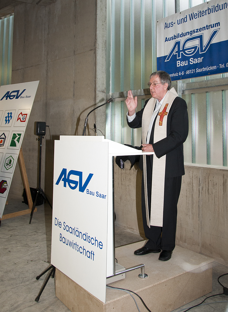 In ihren Grußworten gratulierten Wirtschafts-Staatssekretär Joachim Kiefaber, die Bundestagsabgeordnete Annette Hübinger und der Bürgermeister der LHS Saarbrücken Ralf Latz zu dem außergewöhnlichen Neubau, der nicht nur ein Mehrwert für das Saarland und seine Bauwirtschaft ist, sondern vor allem auch für die Lehrlinge, die Lehrkräfte und Ausbilder. Die Einsegnung erfolgte durch Pastor Nikolaus Niederländer.
