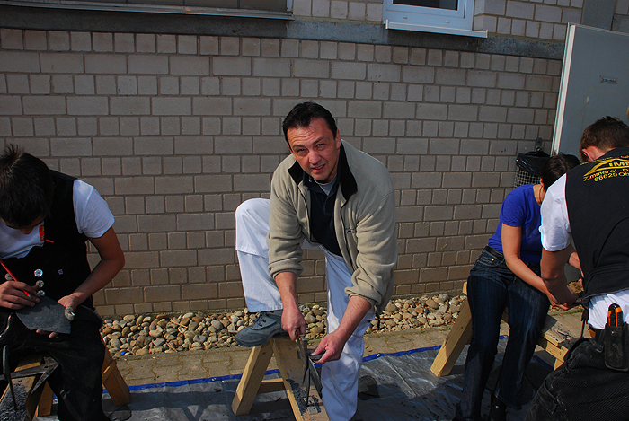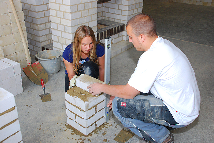So wurde gemauert, gesägt, gehämmert, genagelt, verfugt, verputzt, gemalt, geguckt, gefragt, es wurde Stuck gezogen, Natursteinpflaster verlegt und Schieferplatten zugehauen.