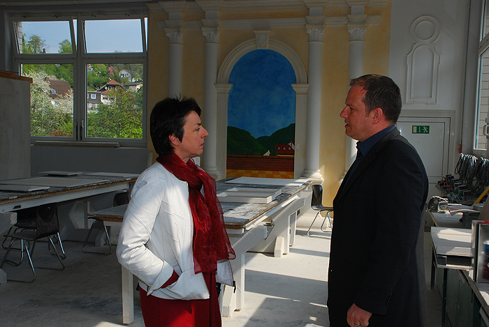 Dr. Eva Backes-Miller Abteilungsleiterin der Abteilung C Berufliche Bildung im Ministerium für Bildung des Saarlandes, besuchte die Mädchen und junge Frauen bei ihrem GirlsDay im Ausbildungszentrum des AGV Bau Saar.