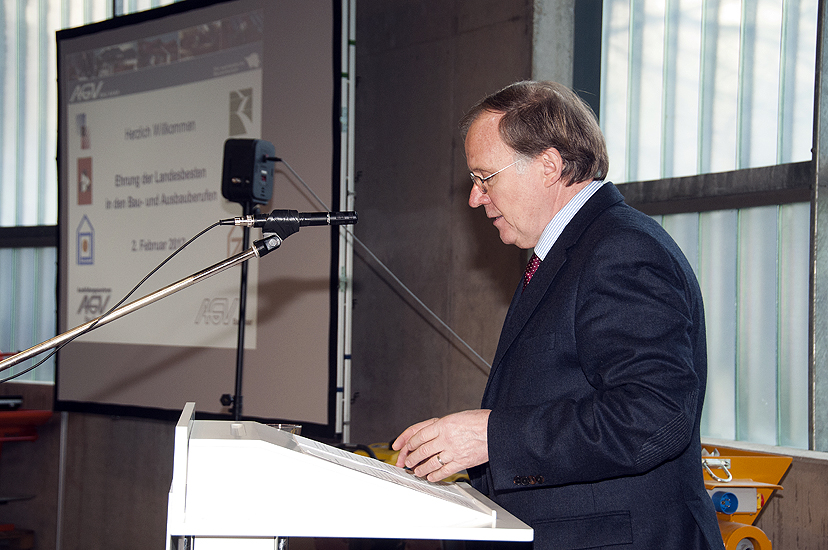 Um die künftig an sie gestellten Aufgaben auch leisten zu können, hat die Sicherung des Fachkräftebedarfs für die Baubranche oberste Priorität. „Nur wenn es uns gelingt, gute Nachwuchskräfte zu gewinnen und zu erhalten, können wir die Leistungsstärke der Bauwirtschaft im Saarland erhalten“. Mit diesen Worten eröffnete der Präsident des AGV Bau Saar, Dipl.-Ing. Hans-Ludwig Bernardi, vor zahlreichen geladenen Gästen die Ehrung der Landesbesten in den Bauberufen. Es reiche aber nicht nur, Nachwuchskräfte zu akquirieren und Schulabgänger zu fördern, so Bernardi weiter, vielmehr müssten Leistungsträger in Form von Leistungswettbewerben auf Landes- und Bundesebene motiviert werden. Mit Stolz könne man auf die Ergebnisse mit zwei Bronzemedaillen sowie drei weiteren Plätzen unter den ersten fünf bei den Bundeswettbewerben blicken. In Anwesenheit von Heidrun Schulz, Geschäftsführerin der Regionaldirektion Rheinland-Pfalz-Saarland der Bundesagentur für Arbeit, gratulierte Bernardi den Landesbesten, denen „die Tür zu einem erfolgreichen beruflichen Werdegang nun weit offen steht“.