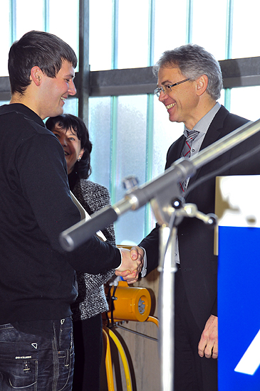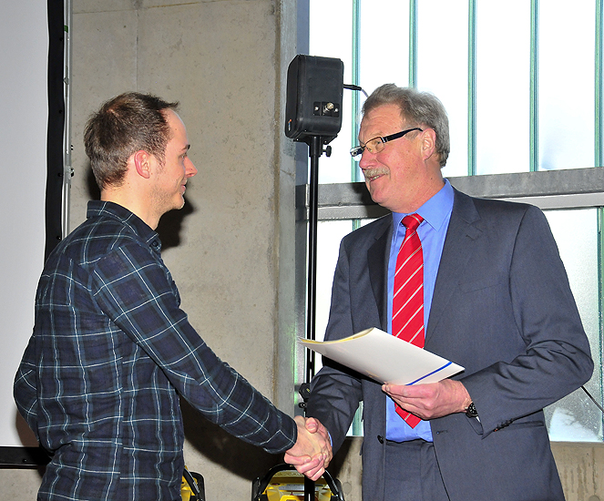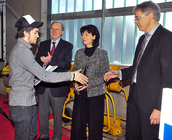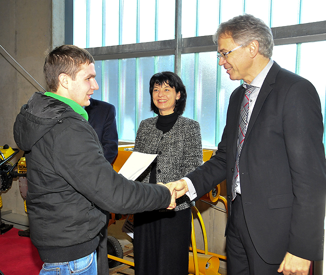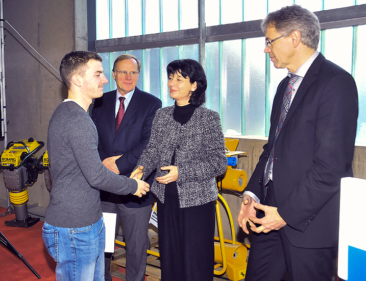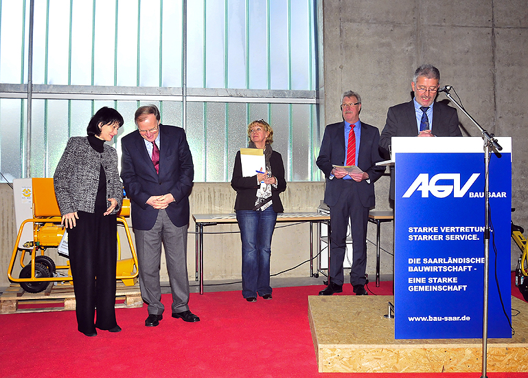 „Innovationsstarke Unternehmen im Land schätzen die duale Berufsausbildung in der Bauwirtschaft weit mehr als bisher bekannt“, so Martin Vanoli, Geschäftsführer der Ausbildungszentrum AGV Bau Saar GmbH, an die Besten gewandt. „Gut ausgebildete Lehrlinge sind die wichtigste Stärke des Standorts Deutschland überhaupt. Denn das Gros der Firmen schafft keine sensationellen Neuerungen, sondern lebt vielmehr davon, dass sie jeden Tag viele Kleinigkeiten besser machen. Das bringe Qualität „Made in Germany“, die Tausende von Firmen täglich in alle Welt lieferten. Vanoli rief die Jugendlichen zu nachhaltigem, lebenslangem Lernen auf, denn „der Kampf um Talente werde künftig größeren Raum einnehmen als der Kampf um Kunden“.