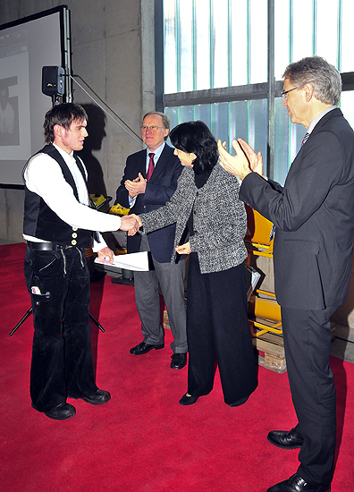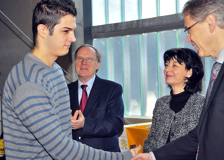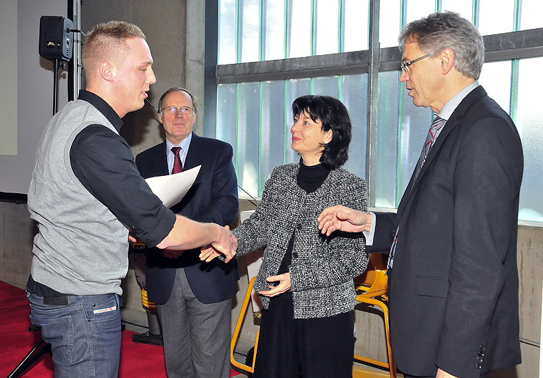 Gemeinsam mit Heidrun Schulz überreichten Präsident Bernardi, Hauptgeschäftsführer Claus Weyers und Martin Vanoli den Landesbesten ihre Urkunden und Preise.