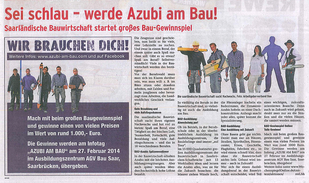 Sie ist die überbetriebliche Ausbildungsstätte des Bauhauptgewerbes und eine hundertprozentige Tochter des Arbeitgeberverbandes der saarländischen Bauwirtschaft. Bereits 1937 haben weitschauende Bauunternehmer an der Saar die Notwendigkeit erkannt, ihren beruflichen Nachwuchs nicht nur in den Betrieben praktisch auszubilden, sondern -wegen der enormen Vielseitigkeit und Unterschiedlichkeit der Bauberufe - auch ergänzend überbetrieblich auf einer Lehrbaustelle zu unterweisen. Das Zentrum stellt sich heute als die größte privatwirtschaftlich betriebene Einrichtung ihrer Art im Südwesten dar.