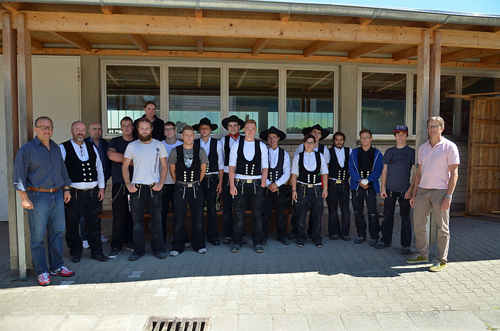 12 Zimmerer, darunter 1 Frau, haben heute im Ausbildungszentrum Ihre Gesellenprüfung bestanden. Mit einer kleinen Feier wurden die neuen Gesellen von den Mitgliedern des Prüfungsausschuss, Ihrem Ausbilder Hans-Peter Marschall und Herrn Markus Pirron, dem Leiter des Ausbildungszentrums, verabschiedet. Als Bester in der praktischen Prüfung erhielt Alexander Kreher einen Weiterbildungsgutschein über 50,00 €. Bester der diesjährigen Gesellenprüfung ist Mario Bernardi. Dafür erhielt er einen Weiterbildungsgutschein in Höhe von 100,00 €.