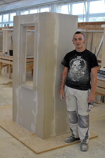 Wandobjekt in Trockenbauweise – lautete die Aufgabenstellung. Die Teilnehmer mussten in 6 Std. Arbeitszeit eine L-förmige Wand mit einer Fensteröffnung als Ständerwand mit Metallunterkonstruk­tion erstellen. Die rechtwinklige Fensteröffnung wurde mit einem Stuckprofil umrahmt.