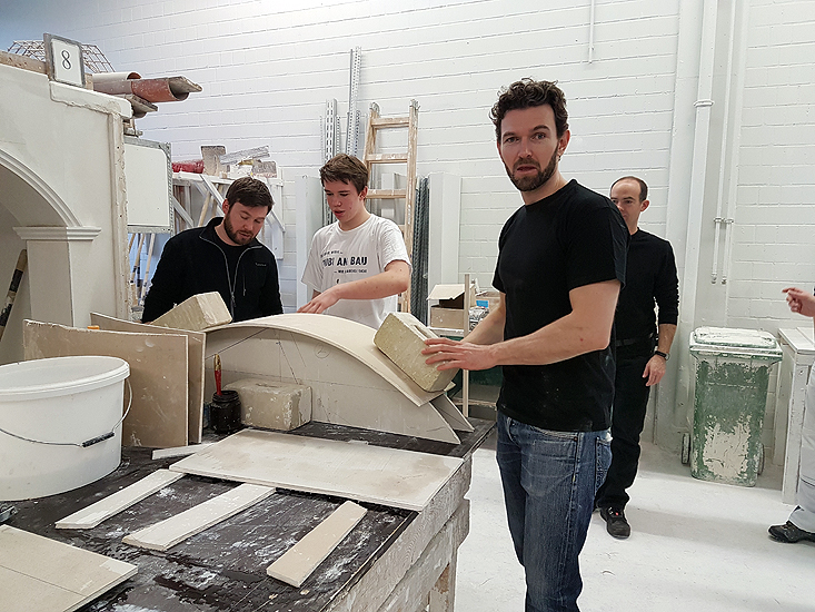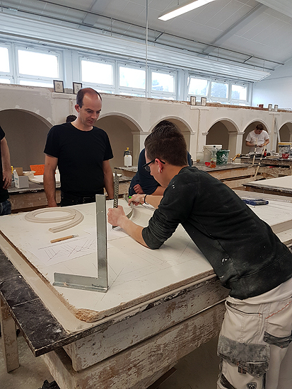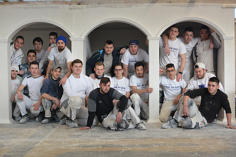 Stuckateurmeister Michael Detemple und die Gruppe St2 (Stuckateure 2. Lehrjahr) hatten ein straffes Programm vorbereitet.