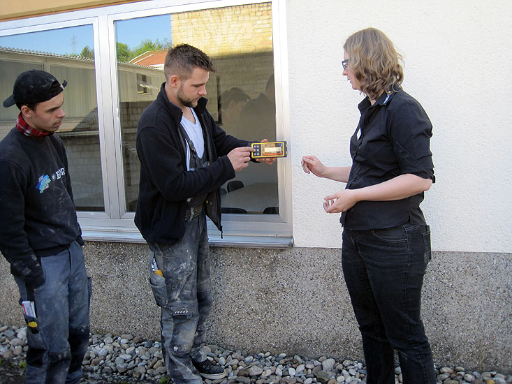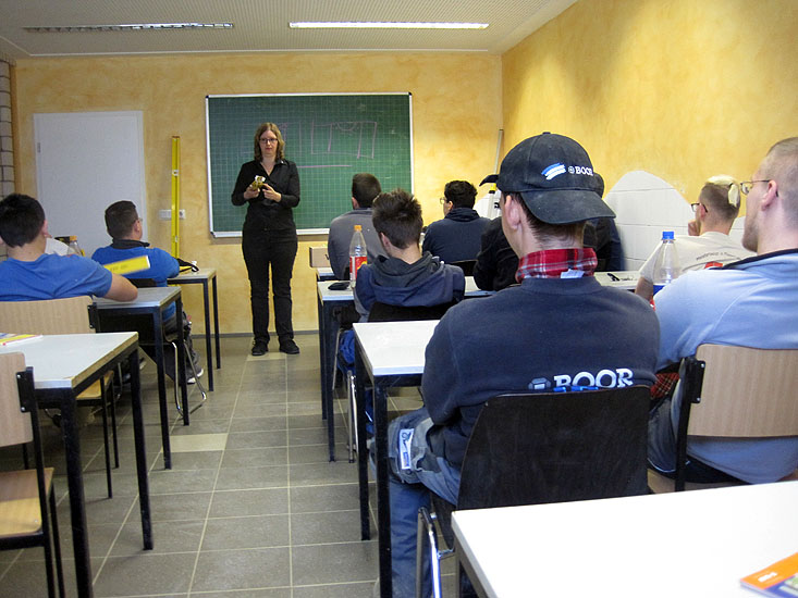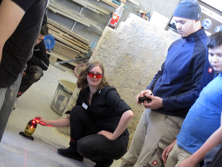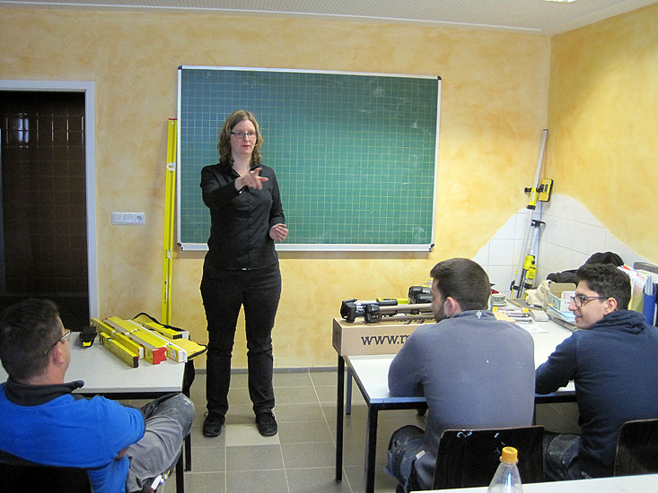 Frau Hagmeier von der Fa. Stabila stellte unseren Azubis verschiedene Messgeräte ( Laser, Wasserwaagen etc.) vor.