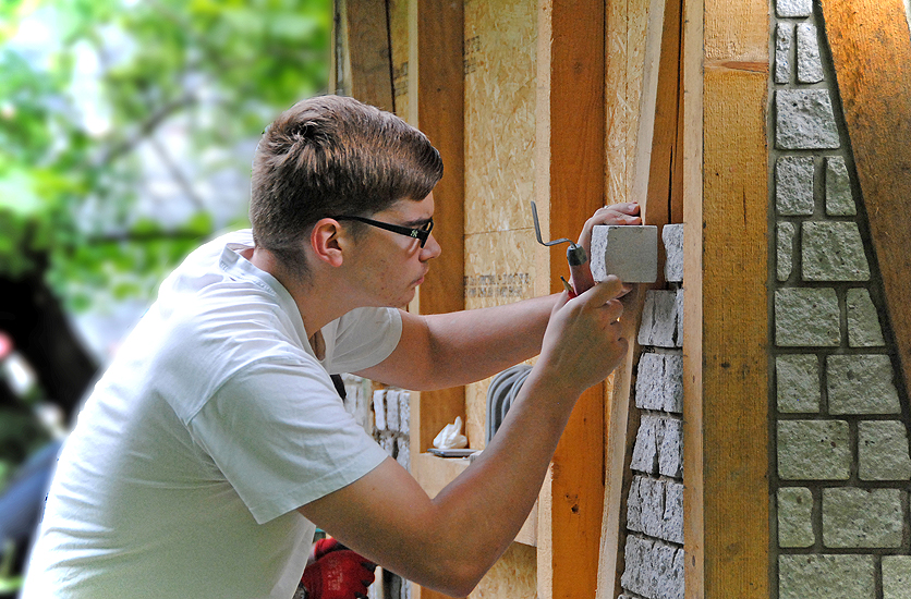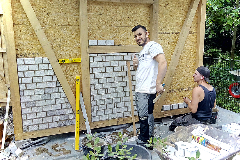 Abschließend haben Auszubildende des Maurerhandwerks die einzelnen Fachungen als Sichtmauerwerk ausgefacht.