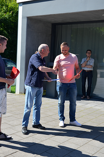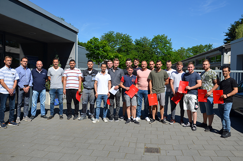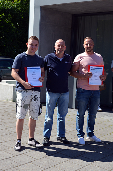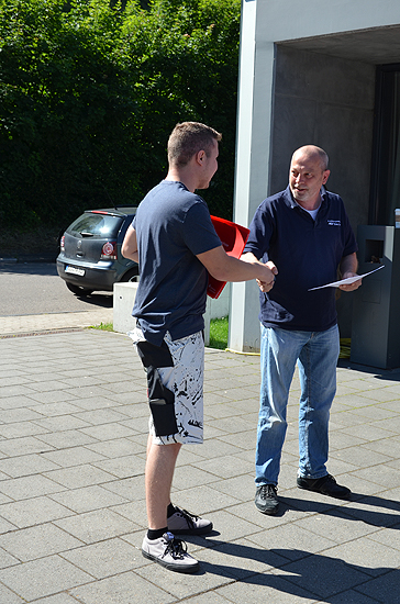 15 Auszubildende haben am 17.06.2019 erfolgreich an der Prüfung zum Gesellen im Fliesen-, Platten-, Mosaiklegerhandwerk teilgenommen. Mit einer kleinen Feier wurden die neuen Gesellen von den Mitgliedern des Prüfungsausschusses und ihrem Ausbilder Thomas Jakobs verabschiedet. Herr Jakobs überreichte den Besten der diesjährigen Prüfung, Christian Höschele und Jannick Waller Weiterbildungsgutscheine der Ausbildungszentrum AGV Bau Saar gGmbH in Höhe von 100,00 €.