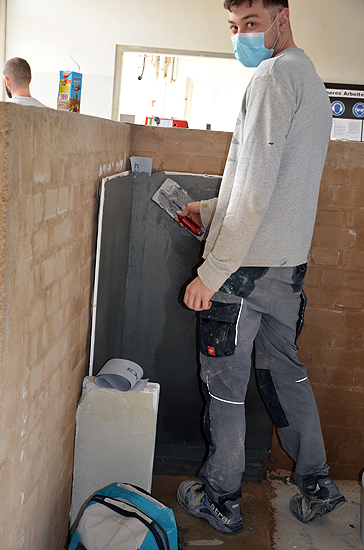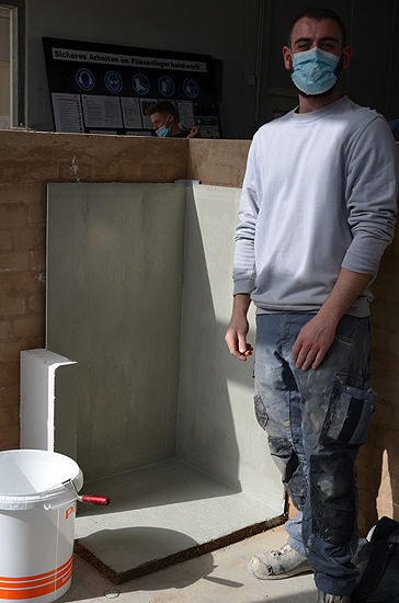 Am 01. April 2021 konnten sich die Azubis des 2. Lehrjahrs im Fliesenlegerhandwerk in der Abdichtungstechnik weiterbilden.