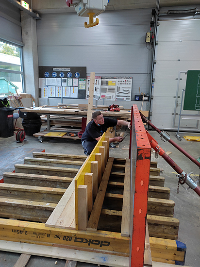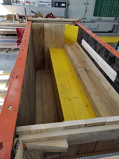 Die Aufgabenstellung für den diesjährigen Landes-Leistungswettbewerb des Beton- und Stahlbetonbauerhandwerks ist zwar in einem Satz erklärt, aber dennoch sehr anspruchsvoll. Sie lautet: Arbeitsprobe Erstellen eines Sturz-Fertigteils mit Auskragung, Gesims und Köcheraussparung.