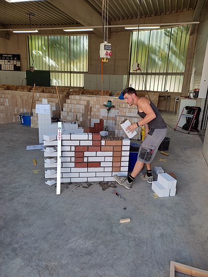 Die Teilnehmer erstellen in 7 ½ Stunden ein Ziermauerwerk, welches in zwei Abschnitte unterteilt ist. Das Mauerwerk besteht aus zwei 1 Kopf starken Wandscheiben, die sich unter 45° schneiden und im spitzen Winkel überlappend vermauert werden. Eine Flucht trägt die Jahreszahl des Wettbewerbs, die 10 bzw. 20 mm vorspringend vermauert wird. Die andere beinhaltet ein vorspringendes umrahmtes quadratisches Ornament, dass unter 45° stehend in das Mauerwerk integriert ist. Das Mauerwerk ist aus KSV bzw. VMz Normalformat zu erstellen und die Fugen werden 3 mm vertieft als Fugenglattstrich ausgeführt.