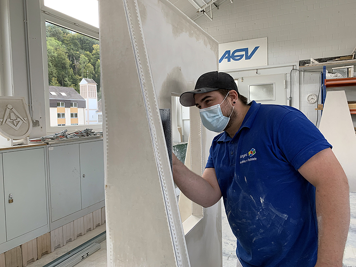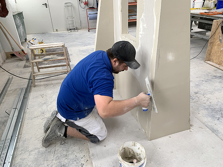 Konstruktion einer Ständerwand in Trockenbauweise auf einem z-förmigen Grundriss mit einer Fensteröffnung und schrägen Seitenwände, lautete die Aufgabe des diesjährigen Landeswettbewerbes der Stuckateure.