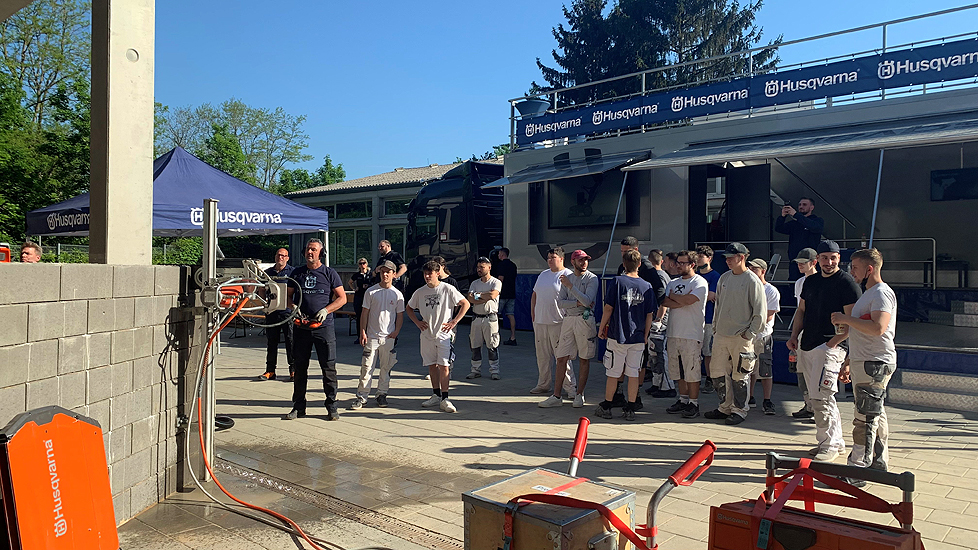 Im Zuge der Jubiläen von Husqvarna 333 Jahre und Blastrac Deutschland 40 Jahre und der Integration der Blastrac Produkte in das Gesamtportfolio von Husqvarna, kam die Roadshow am 11.5.2022 auch in Saarbrücken im Ausbildungszentrum AGV Bau Saar gGmbh vorbei. Es wurden Maschinen zum Bodenstrippen, Fräsen, Schleifen, Wandsägen, Bohren sowie Abbrucharbeiten vorgestellt. Über 140 Auszubildende, Ausbilder und Unternehmer konnten sich eingehend mit den Maschinen beschäftigen und wurden auch von kompetentem Fachpersonal angewiesen. Für das Leibliche Wohl war bestens gesorgt.