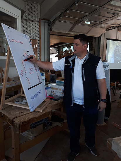 In einer angenehmen und informativen Arbeitsatmosphäre wurden die Produkte der Firma Siga an kleinen Übungsmodellen verarbeitet.