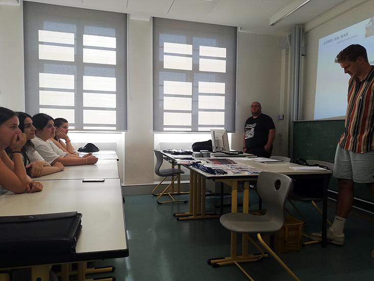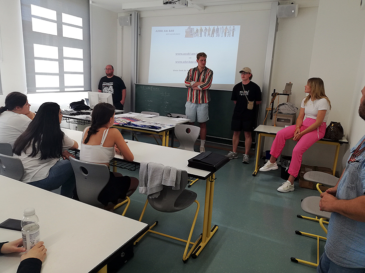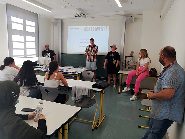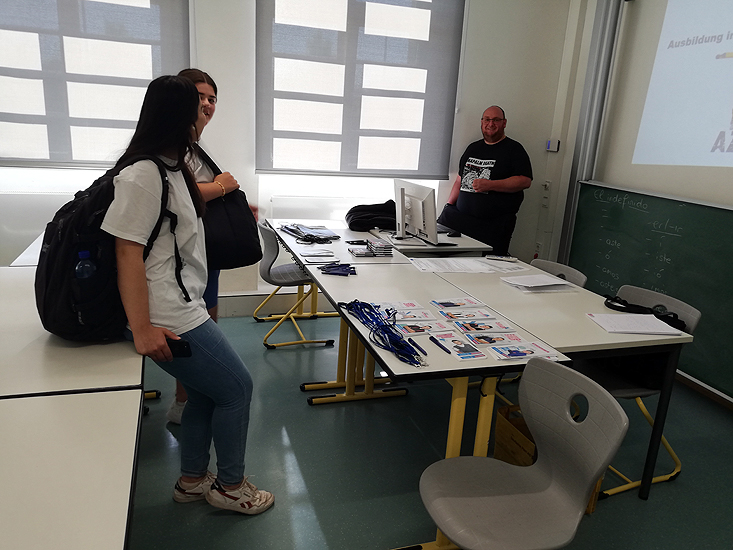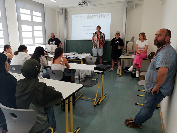 Am 05.07.2022 besuchte das Ausbildungszentrum AGV Bau Saar in Kooperation mit der Agentur für Arbeit und der Fa. Peter Gross Bau das Leibniz Gymnasium in St. Ingbert.