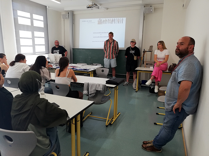In drei 60 minütigen Vorträgen durch Mirko Keßler als Ausbilder des Ausbildungszentrums, Leon Knop Werkstudenten der Fa. Gross, Rebecca Schmitt von der Personalabteilung der Fa. Gross und Max Maurer als Auszubildender zum Stuckateur, wurden die Schüler der 11. Klassen über die Ausbildungsberufe, Weiterbildungsmöglichkeiten und Studienangebote in der saarländischen Bauwirtschaft informiert. Im Detail wurde über die Vorzüge einer vorangestellten Ausbildung vor Studienbeginn, dualen Studiengängen und Studium + informiert. Schwerpunkt des Austauschs war die Digitalisierung im Handwerk, der Umweltschutz und die Nachhaltigkeit beim Bauen. Während den Vorträgen herrschte eine angenehme Atmosphäre und es gab einen regen Austausch zwischen den Schülern und Referenten.