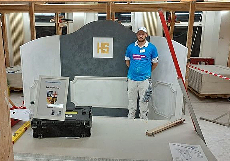 Stuckateur Lukas Dincher (19), Heinrich Schmid GmbH & Co. KG, Niederlassung Homburg, gewann mit seiner tollen Leistung, als 3. Bundessieger, die Bronzemedaille.