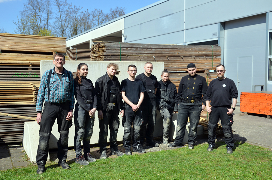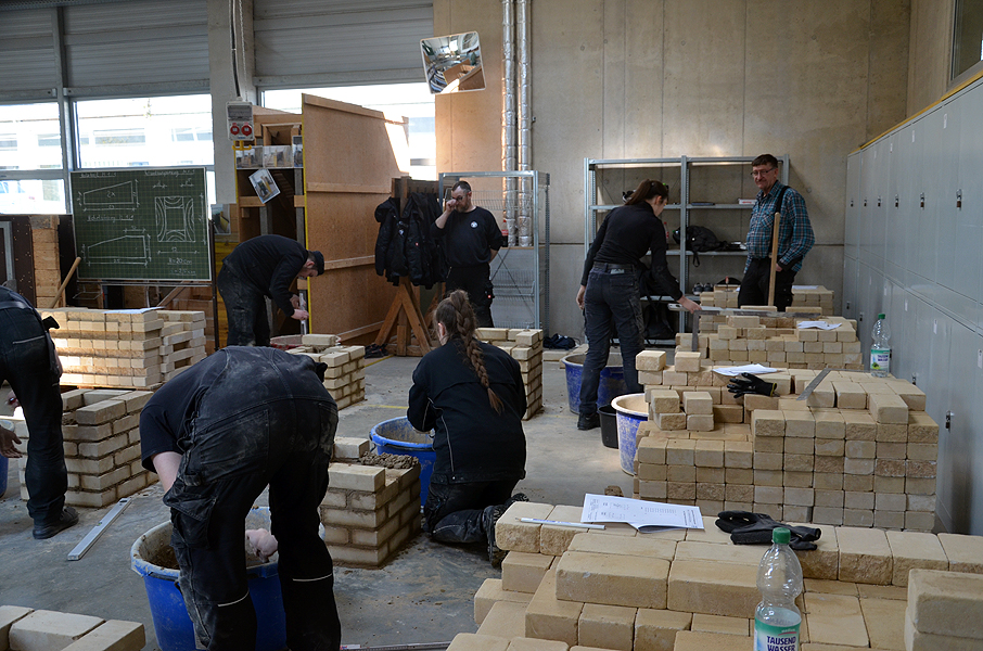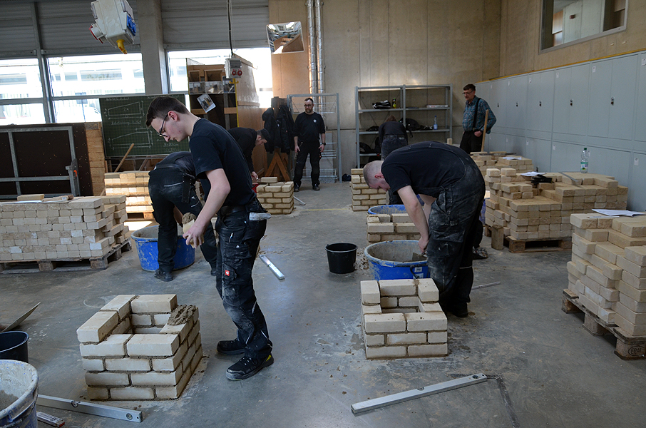 Schornsteinfegerinnung war mit 6 Auszubildenden und zwei Ausbildern zu einem Grundlehrgang im Mauerwerksbau in der Ausbildungszentrum AGV Bau Saar gGmbH.