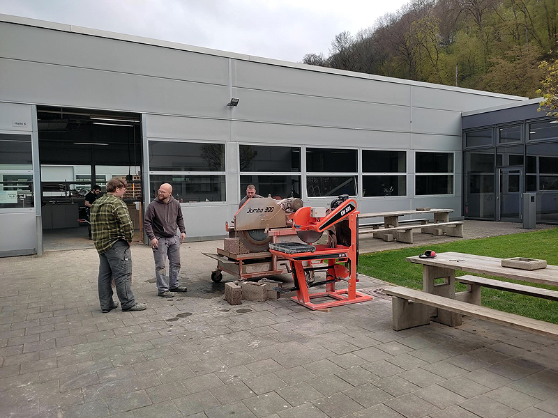 Besonderes Augenmerk wurde auf den Themenkomplex „Verarbeitung“ gelegt. Dabei wurden die Punkte Zubehör und Werkzeuge, Baustelleneinrichtung, Höhenfestpunkte / Höhenkontrolle, Lagerung und Schutz der Steine bzw. Mauerwerk, Kimmschicht anlegen, Fugenausbildung, Überbindemaß, Brüstungsmauerwerk und Mauer bei Frost und Hitze eingehend besprochen. Mithilfe von Fotos und Skizzen wurde erklärt, wie wichtig eine sachgemäße Ausführung der Mauerwerksarbeiten ist, um eine mangelfreie Leistung zu erbringen.