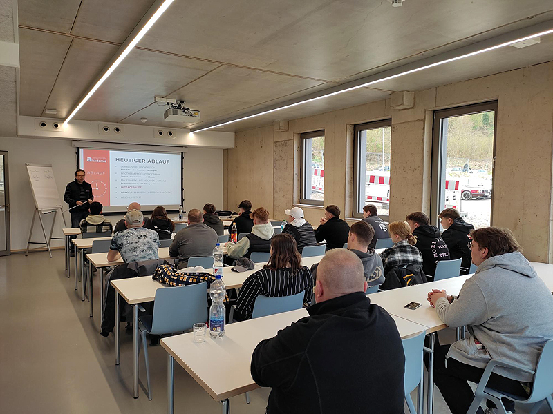 Nach der Mittagspause konnten die Auszubildenden die Theorie in die Praxis umsetzen. Hierzu erhielten sie einen Auszug aus einem Architektenplan, in dem mögliche Fehler eingezeichnet waren, um ein Gespür dafür zu bekommen, dass zu Beginn der Arbeiten immer Kontrollen und eine gute (Arbeits-)Vorbereitung erforderlich sind.