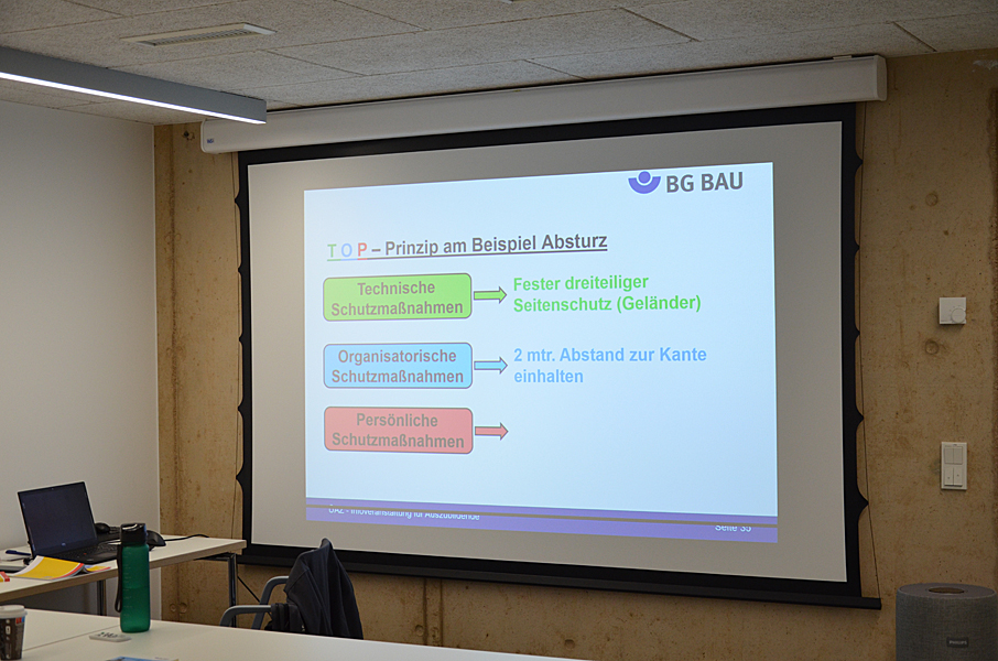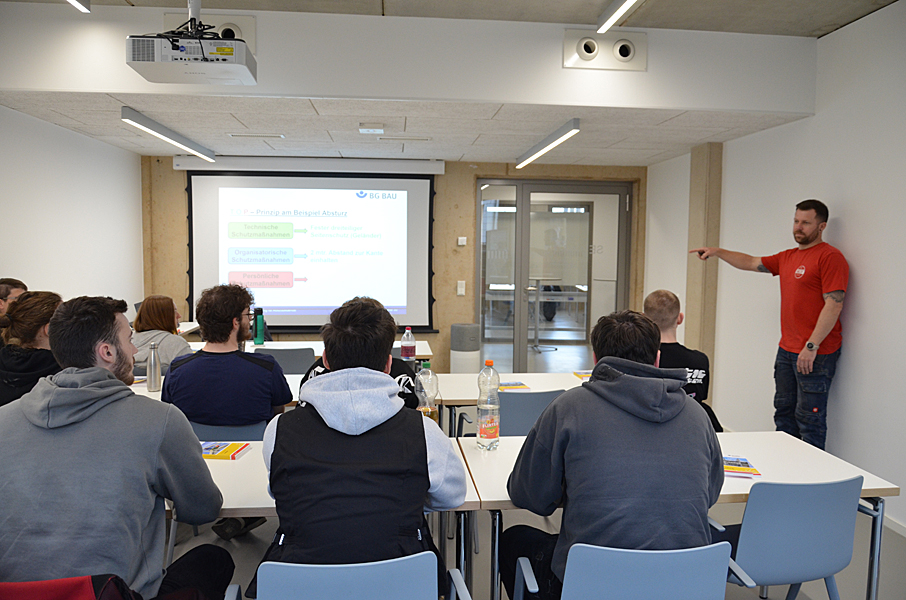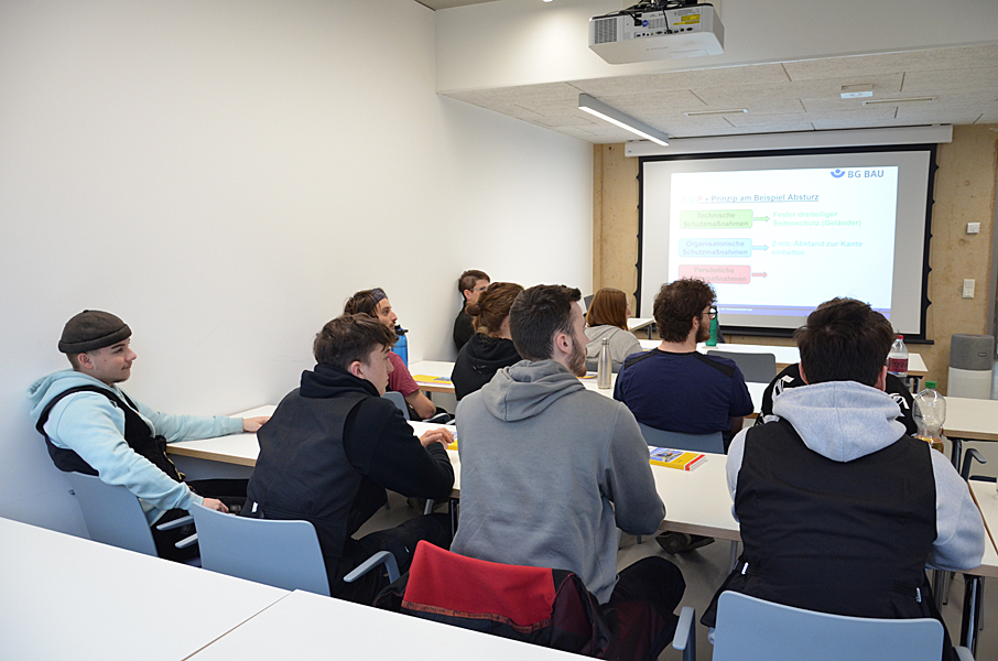 Das Ausbildungszentrum führt in Zusammenarbeit mit der Berufsgenossenschaft der Bauwirtschaft im Rahmen der Fürsorgepflicht für alle Auszubildenden im Bauhauptgewerbe des 1. Lehrjahres eine Informationsveranstaltung durch.