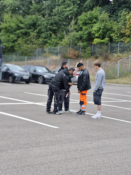 Herr Keßler unser Maurermeister wollte den Schülern nahebringen, dass wir auch mit viel Technik beim Bau aufwarten können und nutzte Vermessungstechnik und Drohne, um dies aufzuzeigen.