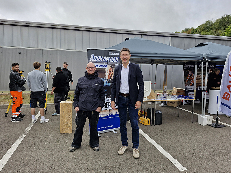 Unterstützt wurden wir von den Firmen Bautra und Backes, die es sich nicht nehmen lassen wollten, das Bauhandwerk interessierten Schülern und Schülerinnen vorzustellen.