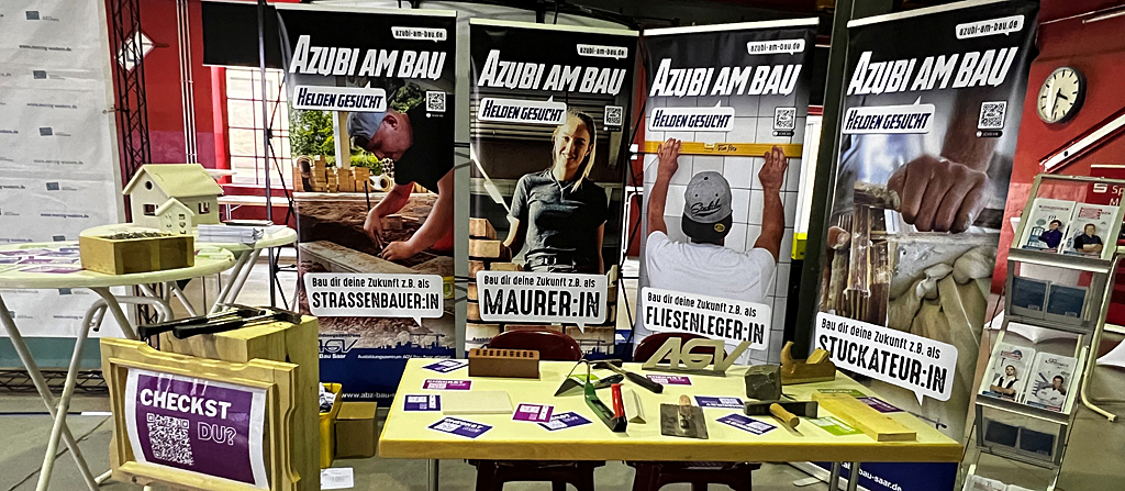 Das Ausbildungszentrum des AGV Bau Saar präsentierte die Berufe der Bauwirtschaft wieder in der Eisenbahnhalle Losheim. In 2 Tagen standen wir für alle Fragen rund um das Thema Ausbildung zur Verfügung und konnten in vielen Gesprächen und Vorführungen den ein oder anderen Jugendlichen von der großen Vielfalt der Bauberufe überzeugen. Ob Fragen über das Zimmererhandwerk, den Beruf des Stuckateurs, des Maurers oder Fliesenlegers. Stuckateurmeister Daniel Schäfer besuchte mit einem symphatischen Team aus einer Zimmererin und zwei Stuckateuren die Ausbildungsmesse und standen bereit für die Fragen der ca. 1.400 Schülerinnen und Schülern.