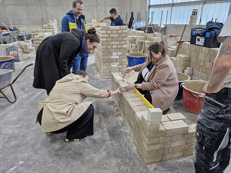 Herr Keßler (Maurermeister)  und Frau Lauer (Sozialpädagogin) führten die interessierte Gruppe durch unsere Hallen und stellten die Gewerke vor.