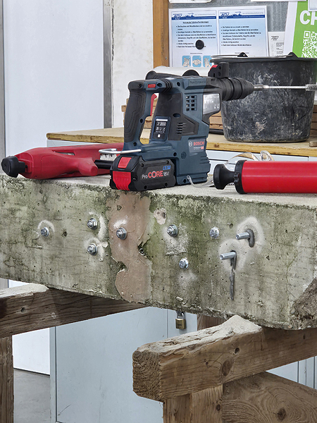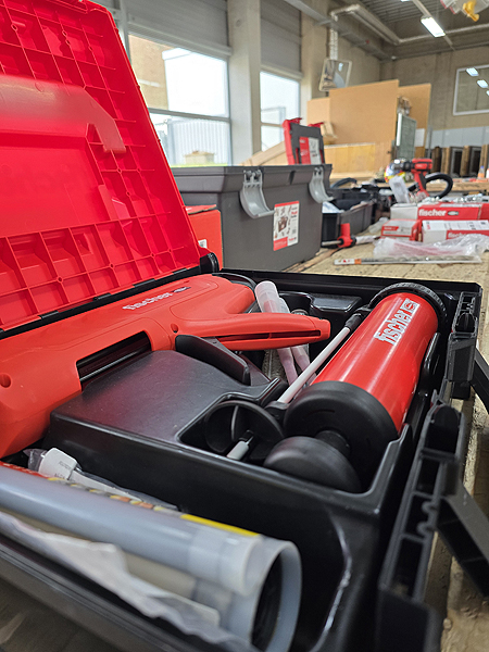 Für variable Einbausituationen kommen FHB- und FIS-V-Injektionsmörteldübel zum Einsatz. Das Verbundsystem aus Mörtel und Ankerstange überträgt die Last über Haftreibung und Formschluss. In der Anwendung sind präzise Bohrlochreinigung und Aushärtezeiten entscheidend, um die hohe Leistungsfähigkeit zu erreichen.