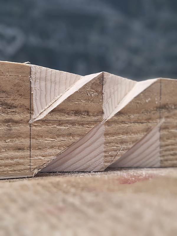 Herr Brust unser Maurer- und Betonbauermeister zeigte anhand einer Sägeübung, wie die Auszubildenden lernen, eine Schalung aus Holz herzustellen.